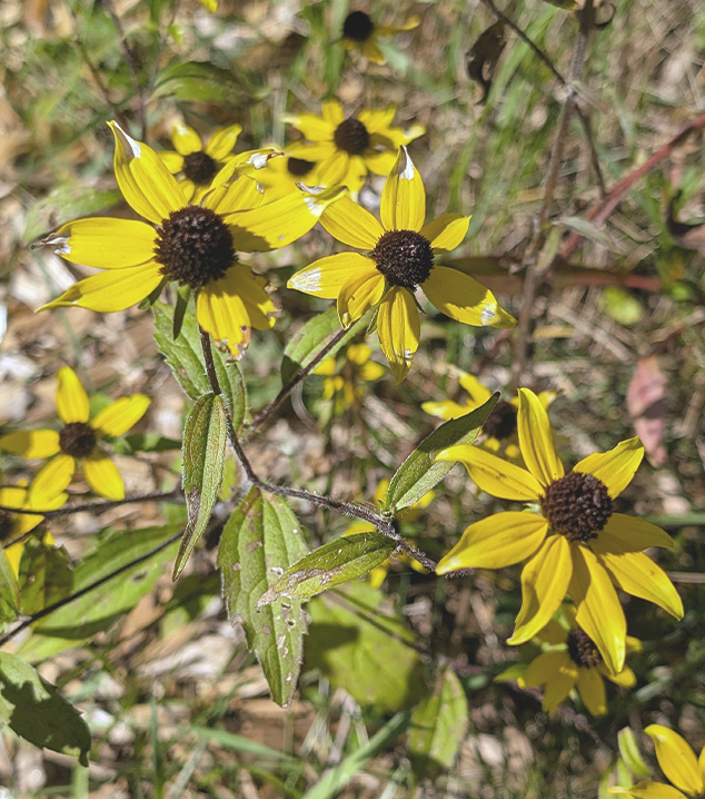 One of the most valuable late-season pollinator plants in the eastern North American flora. The long bloom window — often ten to twelve weeks — supports native bees, honey bees, butterflies, and skippers during a period when many other summer-bloomers have finished. The seed heads then extend the plant’s ecological utility into the cold months, feeding finches and other granivorous birds. Culturally, Brown-eyed Susan has not accumulated the same folk associations as the more familiar Black-eyed Susan, but it has become a staple of the meadow-garden and prairie-restoration movements, valued for its generosity of bloom, its willingness to naturalize, and its compatibility with asters, goldenrods, grasses, and other native late-summer species.