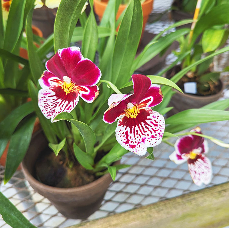 The flat, forward-facing flowers of Miltoniopsis phalaenopsis evolved to be highly visible to pollinators in dim, mist-filled forests. In cultivation, this same trait makes them one of the most visually striking orchids on a bench — they don’t hide their beauty at any angle.